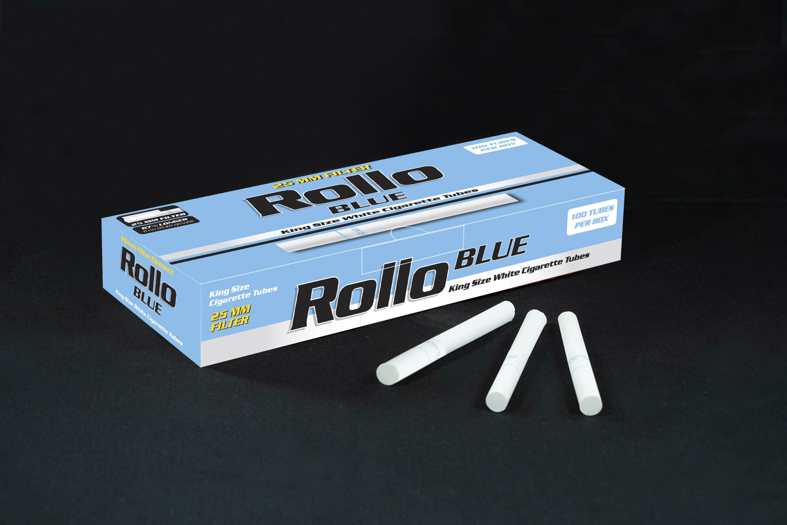 Cigarette Tubes Rollo Blue 100 CT 25mm filter length